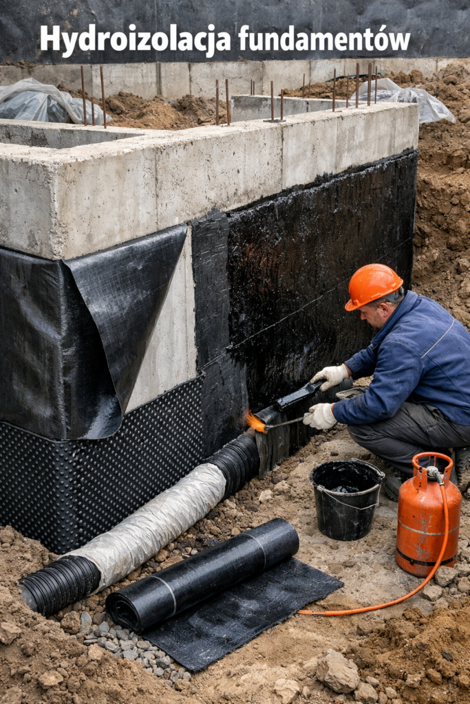 Zabezpieczamy fundamenty przed wodą gruntową i wilgocią.